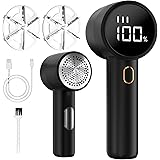 BZGG Levapelucchi Elettrico,Display Digitale LCD,Rimuove i Pelucchi per 3 Livelli di Potenza Regolabili, Taglia Pelucchi a 6 Lame per vari Tessuti,Nero